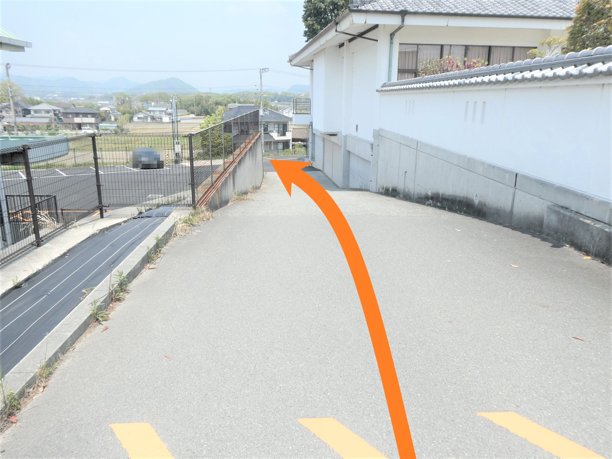 坂道は車の出入口となっていますので、車のすれ違いにはご注意ください。