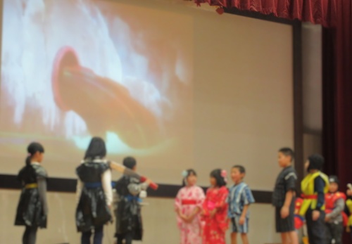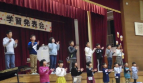 11.23(土) 学習発表会 学習発表会に向けて、各学年、練習を一生懸命してきました。時に意見の食い違いで揉めることがありました。しかし友だちの意見を聞き、試行錯誤を繰り返して今日を迎えることができました。一生懸命してきたことを、見てもらえるワクワク、失敗しないようにとドキドキ。いろんな気持ちが混じり合いながらも、精一杯、発表することができました。 プログラム2 3年生「なかま~心を合わせて~」 英語の歌とパプリカの合奏をしました。英語の発音を何度も練習し、はっきり、でも音楽に合わせて歌う難しさを経験しました。合奏では16人の心が一つになるように、一生懸命練習してきた成果を発揮できました。 ![]() プログラム3 1年生「ウィーアー!音楽隊」 「年をとってもずーっとなかよしでいれたらいいね」という想いをこめて『ね』という歌を歌いました。合奏では、運動会でおどった『ウィーアー!』を演奏しました。短い練習期間でしたが、その成果を十分に発揮した音楽隊でした。 ![]() プログラム4 4年生「戦え!エコ戦隊クリーンジャー!!~大怪獣ゴミラを救えの巻き~」 社会科での「ごみ処理とその利用」について学習したことを、劇にして、表現しました。ストーリー性のある面白い内容で、地球をきれいに、エコな世界にするために、私たちができることが、クイズなどで分かりやすく表現されていました。 ![]() プログラム5 全校合唱「この歌を」