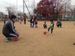 サッカーチーム”イルソーレ”のコーチに来て頂き、運動遊び、ボール遊びを楽しみました。