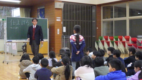 ![]() ![]() 学校に子どもたちの声が戻ってきました。3学期のスタートです。代表の子どもたちからは「運動と勉強をがんばってかしこくなります。」、「整理整頓に心がけ、ピカピカにします。」、「元気な声であいさつをします。」そして、「考えて行動します。」というめあてを言ってくれました。それを受けて『3学期は学年を仕上げる』という話をしました。 学年を仕上げるとは、「今まで続けてやってきたことをやり抜くこと」と「今こそやらなければならないことをやること」です。それは、学習や生活の中で自分を奮い立たせ、ふんばっていくことになります。 |